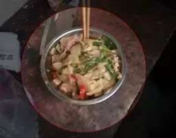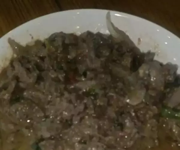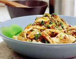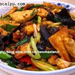 炒麻豆腐是旧京百姓地道的家常菜,别看此物甚廉,但要炒好亦非易事,首先在原料上就要有所选择,得用东直门四眼井粉房里做的麻豆腐才算正宗。配料讲究用纯正的羊尾巴油和“野鸡脖儿”嫩韭菜,方能显出炒麻豆腐的“英雄本色”。