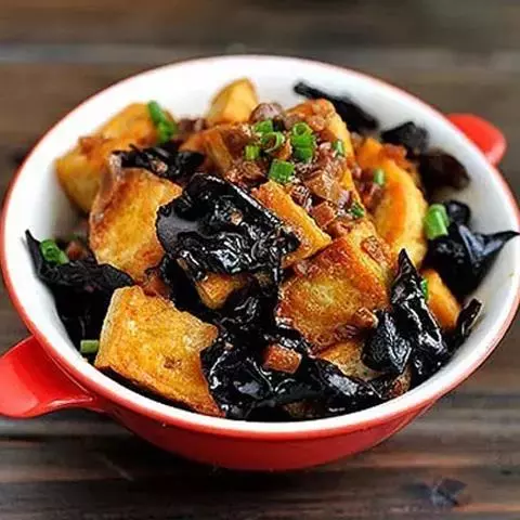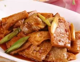 此时在起锅前放入切成寸段儿的“野鸡脖儿”嫩韭菜梗儿,洒上炒焦的羊肉丁出锅,再淋上一勺红亮亮的辣油,便是一味亦饭亦菜不可多得的美食。炒麻豆腐原来用羊尾巴油炒,因其凉了以后有膻味,一般人不能接受,现改用植物油和羊腰窝肉切末,配青豆和雪菜,先用黄酱与麻豆腐一起炒,然后要用小火至粘糯后,要用红辣椒与切好的豆瓣葱,用热油炸出葱辣香味,浇在刚出锅的麻豆腐上,炒麻豆腐成菜之后,灰白红绿相间,口感香醇味厚,别有风味。