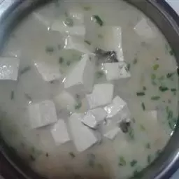 麻豆腐由于是制粉丝的下脚料,价钱便宜,普通百姓都喜欢吃,尤其到了秋风一吹,天气渐凉的季节,走街串巷的小贩,或推车或挑担,边走边吆喝豆汁来——麻豆腐!这个季 麻豆腐 节也正是想吃麻豆腐的时候,笔者就喜食此菜,到了秋冬季,甚至赶在上市之前求人从粉丝厂带回来,分与爱好吃这口的老朋友同享。