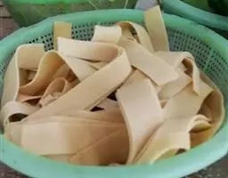 麻豆腐 正宗的麻豆腐应该有四种必备的原料——雪里蕻、羊尾油、黄豆酱、青韭。炒麻豆腐,加一些雪里蕻是为了让炒出的麻豆腐有筋骨,用切成丁的羊尾油炒,会更香,盛一勺炒好的麻豆腐放到嘴里,吃到羊尾油时会咬出一股油来。过去人们喜欢在吃面的时候拌上一勺麻豆腐,为了提它的咸味,炒麻豆腐时要加勺黄豆酱。炒得之后,用勺子在麻豆腐中间打个窝,中间加入炸好的辣椒油,周围则要撒上青韭。青韭很细,葱芯绿,这种韭菜特别提味,用刀一切满屋子都会飘着韭菜的香气。但青韭已经很少见了,没有青韭时也可以用一种紫色根的叫“野鸡脖”的韭菜代替。