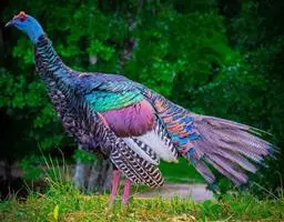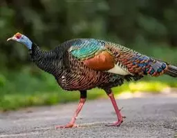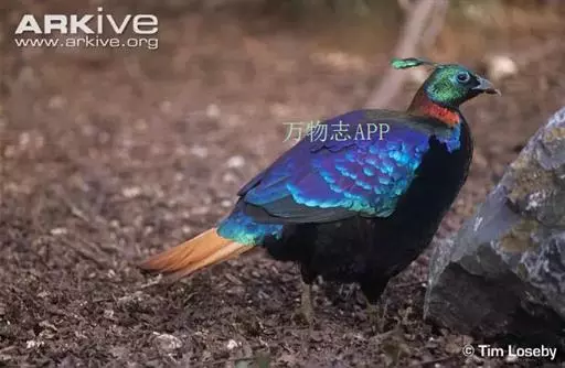 • 黑长尾雉大型鸡类,体长53~88厘米。雄较雌大。雄鸟通体紫蓝色,脸鲜红色,翅上有一条显著的白色翅斑…