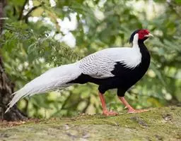 • 白鹇,是鸡形目雉科鹇属的一种留鸟。雄鸟上体白色并具黑色纹,下体黑色,头顶具黑色长羽冠,…