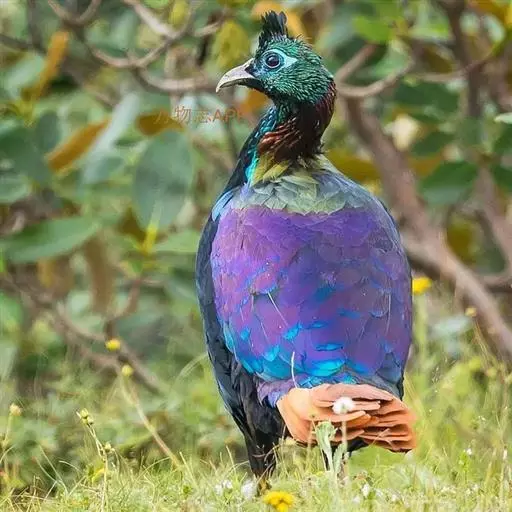 体形较家鸡肥大的是棕尾虹雉,雄鸟羽冠长,而具匙状羽端,上体大都呈金属铜绿、紫及绿蓝等色。下背白,尾棕色,下体褐黑色。分布于西藏南部、东南部、雅鲁藏布江东部,在该地为留鸟。