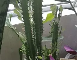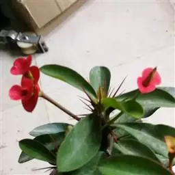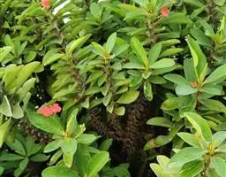 虎刺梅:别称铁海棠,是蔓生灌木植物。茎多分枝,长60-100厘米,直径5-10毫米,具纵棱,密生硬…