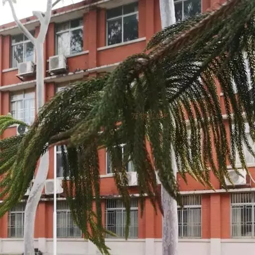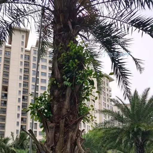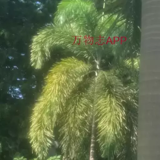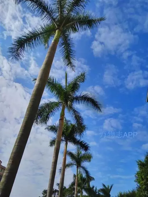 王棕(学名:Roystonea regia (H.B.K)O.F.Cook):又名大王椰子。乔木;单干,直立叶痕不明显,叶簇生于干顶,叶片大,长达3米以上,叶鞘长大,羽状全裂,羽叶狭长柔软,列序不甚整齐,深绿色。干粗壮雄伟,中下部膨大,呈佛肚状,径达40厘米以上,确为棕类之王,是显示热带壮丽风光的典型树种,