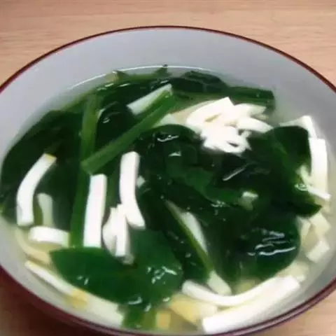 豆腐海带汤是一道色香味俱全的传统名肴,属于北京菜。将豆腐切丁,菠菜切段,海带切丝;锅内放入开水,加…