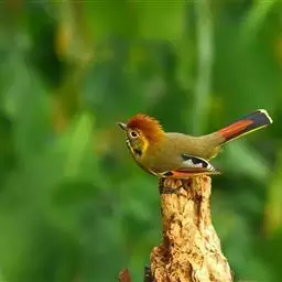 火尾绿鹛是莺科、绿鹛属小型鸟类,体长11-14厘米。上体绿色,头顶至枕具黑色鳞状斑,眼先和眼后黑色,…
