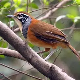白颊噪鹛是雀形目噪鹛科噪鹛属鸟类,又称土画眉、小画眉、小噪鹃。成鸟额至头顶栗褐色,…