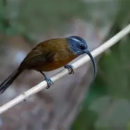 剑嘴鹛:中型鸟类,体长21-22厘米。嘴特别细长而向下弯曲,头顶和头侧烟灰色具长而窄的白色眉纹,…
