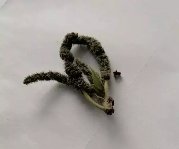 花萼钟状,长1-1.5厘米,顶端5浅裂,裂片近圆形,长2.5-4毫米,宽3-5毫米。花冠筒状钟形,长3-4厘米,顶端5裂,裂片近半圆形,长4-6毫米,宽0.6-1厘米,边缘常稍外卷,颜色有变异,淡黄白色或淡紫色,干后常变棕褐色。雄蕊4枚,花丝着生于距筒基部5-6毫米处,长1.5-2.5厘米,基部被皱曲长柔毛,花药长卵形,长3.5-4.5毫米,密被长柔毛,基部有骤尖头。