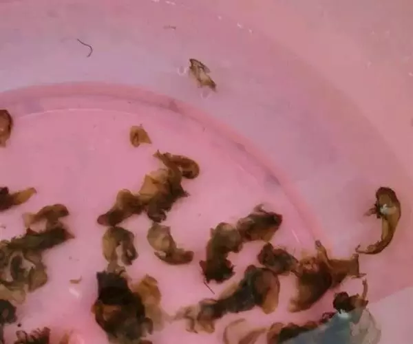 将顶头变色的肉苁蓉用开水烫头或切除变色头,然后将肉苁蓉放在干净的水泥地面上或其它非金属器具上晾晒,每天翻动2-3次,防止霉变,晒至完全干(含水量在10%以下)即可收集包装。