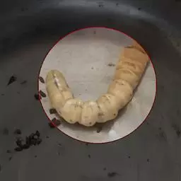 3.4—3.6mm,椭圆形,黄色,头部向下弯曲,足和翅痕明显。