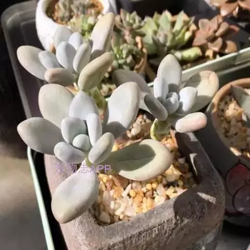 星美人是景天科多肉植物中的一个经典品种,其肉质叶浑圆可爱,色彩素洁淡雅。而用叶片扦插所产生的幼株叶片排列紧凑,犹如一粒粒珠圆玉润的卵石。常用小盆栽种,点缀书桌、几案、窗台等处,如同玉石雕琢的工艺品,非常奇特。