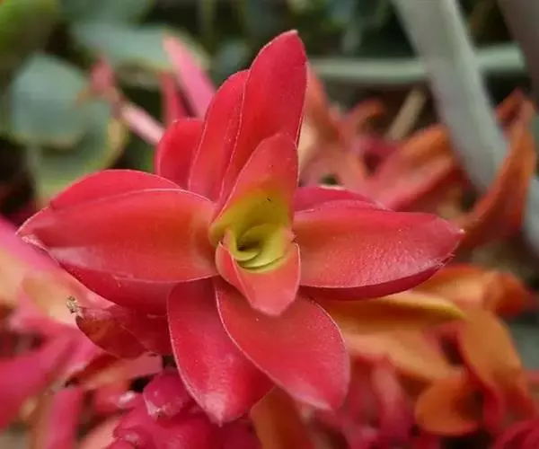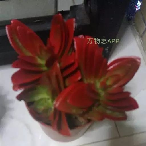 火祭 火祭鲜红的肉质叶是其独特与魅力所在,养护简单,观赏价值较高。如燃烧的火焰般给人以蓬勃向上的热情活力之感,感染力非常强。在晚秋至初春的冷凉季节叶色尤为鲜亮,非常应景。