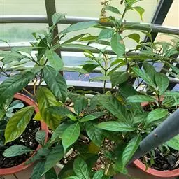 栀子花,花朵簇状约30枚瓣,奶油色,中心黄色;花径12cm;气味果香.