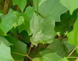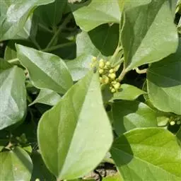 木质藤本,长达10余米或更长,小枝通常被灰黄色绒毛,有条纹,常长而下垂,老枝无毛。叶纸质至薄革质,三角状卵形至三角状近圆形,很少卵状椭圆形,长3.5 -8厘米,很少超过10厘米,顶端钝或圆,很少短尖,有小凸尖,基部近截平至心形,很少阔楔尖,边缘有圆齿或近全缘,两面被绒毛或上面被疏柔毛至近无毛,很少两面近无毛;掌状脉5条,很少3条,网状小脉稍明显;叶柄长3-7厘米,被绒毛,通常生叶片基部,极少稍盾状着生。聚伞花序伞房状,长2 -10厘米,被绒毛;雄花