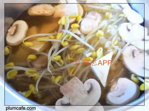 主料:黄豆芽100克,蘑菇(鲜蘑、草菇)100克