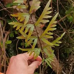 毛轴碎米蕨(学名:Cheilanthes chusana Hook.)是中国蕨科、碎米蕨属植物。植株高10-30厘米。根状茎短而直立,被栗黑色披针形鳞片。叶簇生,柄长2-5厘米,亮栗色,密被红棕色披针形和钻状披针形鳞片以及少数短毛;叶片长8-25厘米,中部宽(2)4-6厘米,披针形,短渐尖头;裂片长圆形或长舌形,无柄,或基部下延而有狭翅相连,钝头,边缘有圆齿。叶脉在裂片上羽状,单一或分叉,极斜向上,两面不显。叶干后草质,绿色或棕绿色,两面无毛,羽轴下面下半部栗色,上半部绿色。孢子囊群圆形,生小脉顶端,位于裂片的圆齿上,每齿1-2枚;囊群盖椭圆肾形或圆肾形,黄绿色,宿存,彼此分离。
