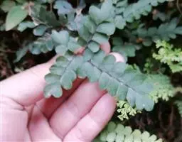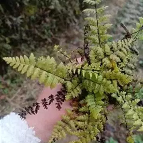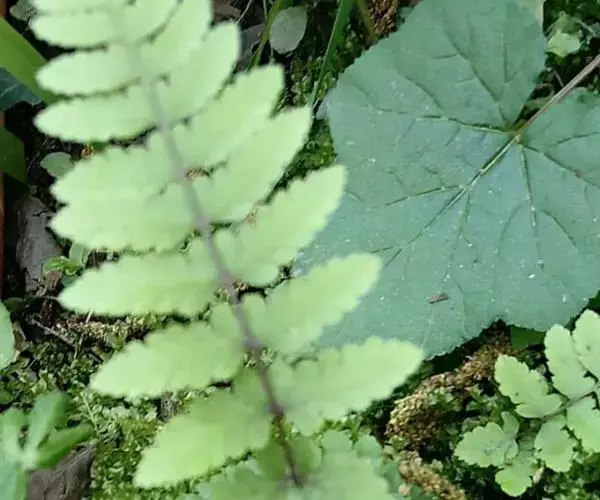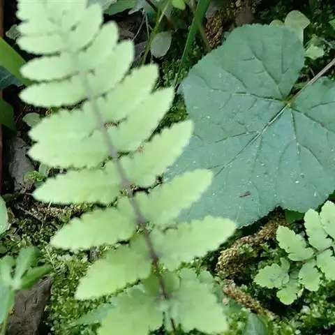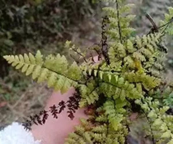 植株高10-30厘米。根状茎短而直立,被栗黑色披针形鳞片。叶簇生,柄长2-5厘米,亮栗色,密被红棕色披针形和钻状披针形鳞片以及少数短毛,向上直到叶轴上面有纵沟,沟两侧有隆起的锐边,其上有棕色粗短毛;叶片长8-25厘米,中部宽(2)4-6厘米,披针形,短渐尖头,向基部略变狭,二回羽状全裂;羽片10-20对,斜展,几无柄,中部羽片最大,长1.5-3.5厘米,基部宽1-1.5厘米,三角状披针形,先端短尖或钝,基部上侧与羽轴并行,下侧斜出,深羽裂;裂片长圆形或长舌形,无柄,或基部下延而有狭翅相连,钝头,边缘有圆齿;下部羽片略渐缩短,彼此疏离,有阔的间隔,基部一对三角形。叶脉在裂片上羽状,单一或分叉,极斜向上,两面不显。叶干后草质,绿色或棕绿色,两面无毛,羽轴下面下半部栗色,上半部绿色。孢子囊群圆形,生小脉顶端,位于裂片的圆齿上,每齿1-2枚;囊群盖椭圆肾形或圆肾形,黄绿色,宿存,彼此分离。 毛轴碎米蕨