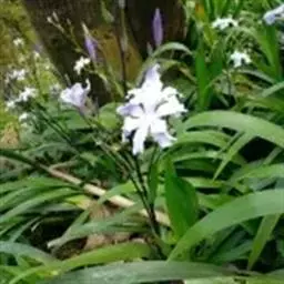 亮叶鸢尾为常绿多年生草本植物。叶面光滑、亮绿色,花茎扁平叶状。原产于巴西。