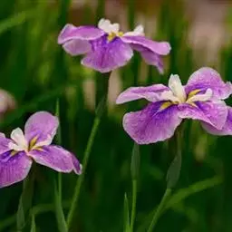 花菖蒲:是玉蝉花的变种。多年生宿根挺水型水生花卉。根状茎短而粗,须根多并有纤维状枯叶梢,叶基生,线…
