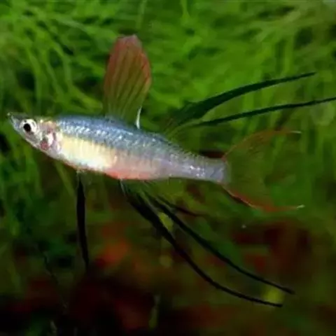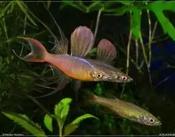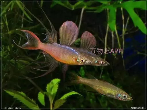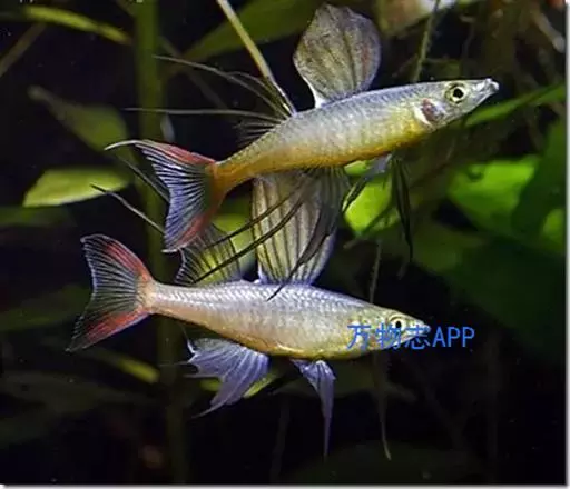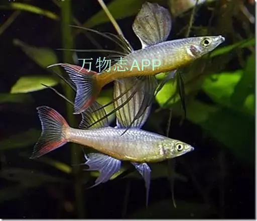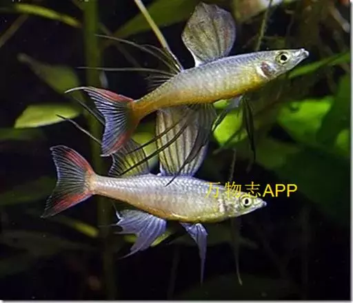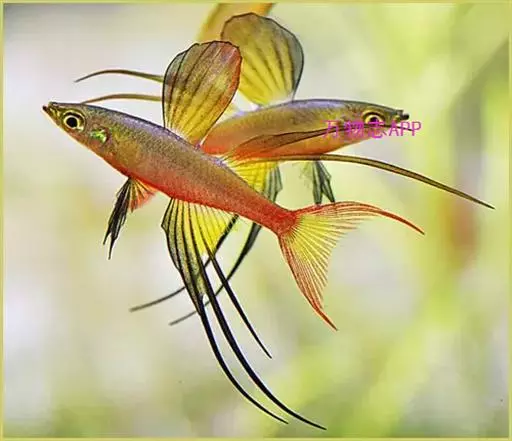伊岛银汉鱼的腹鳍变异为两根长长的尖鳍,形似燕子,故名“燕子美人”。当然它们引人注目的地方除了纤长的腹鳍外,还有精心饲养后展现的美丽体色。