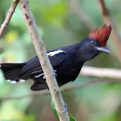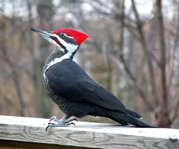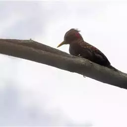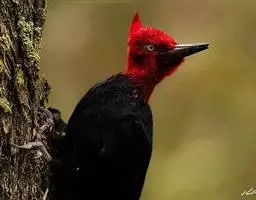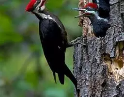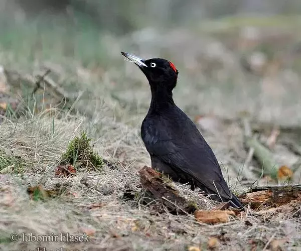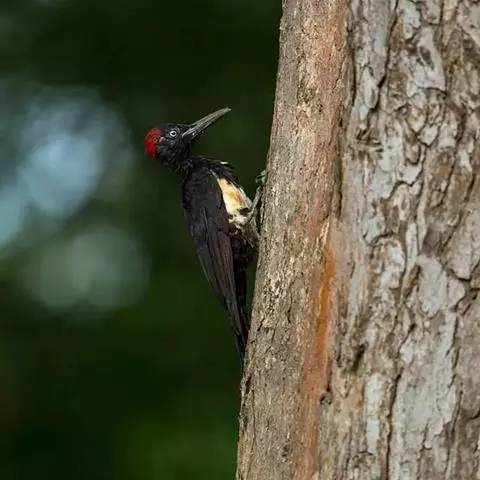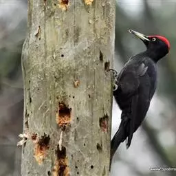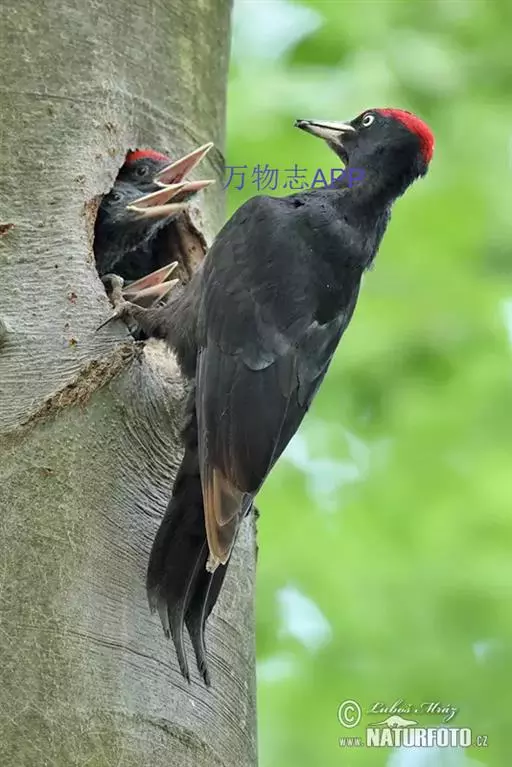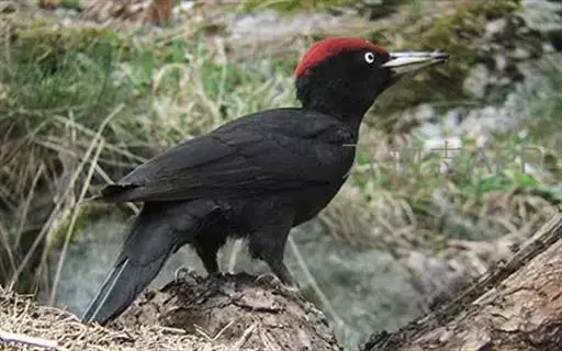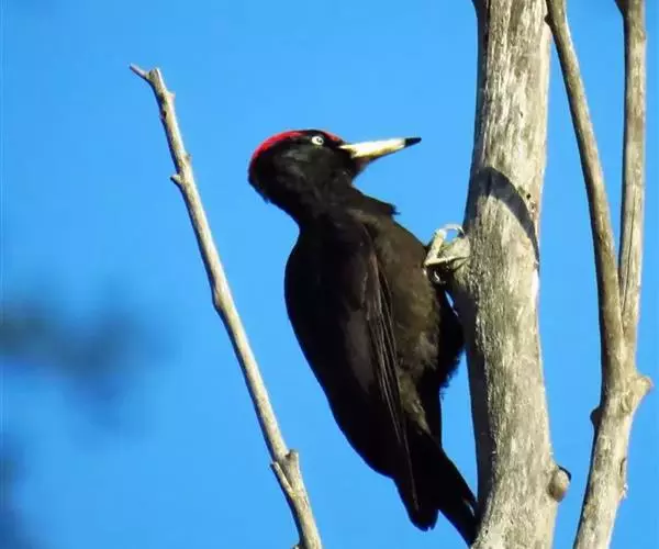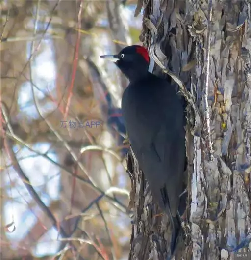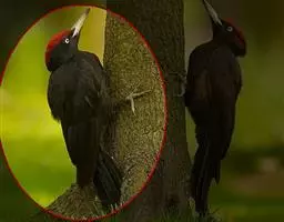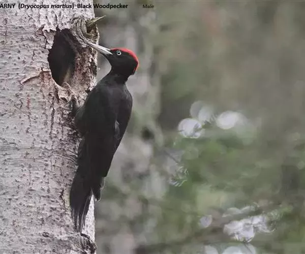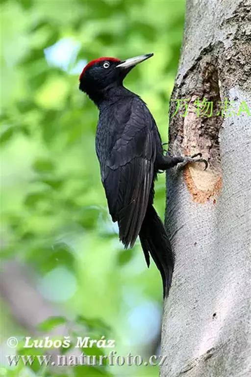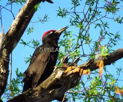 黑啄木鸟(学名:Dryocopus martius)属鴷形目、啄木鸟科,是一种大型的啄木鸟,体长45-47厘米,翼展64-68厘米,体重300-350克,寿命11年。是啄木鸟中最大的一种。通体几纯黑色;雄鸟额、头顶和枕全为血红色;雌鸟仅后头有血红色。