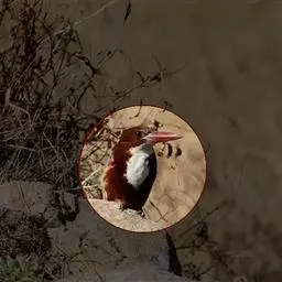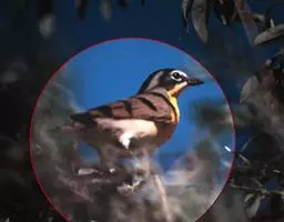 雌鸟和雄鸟相似,但羽色稍淡,仅头后部有朱红色。