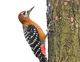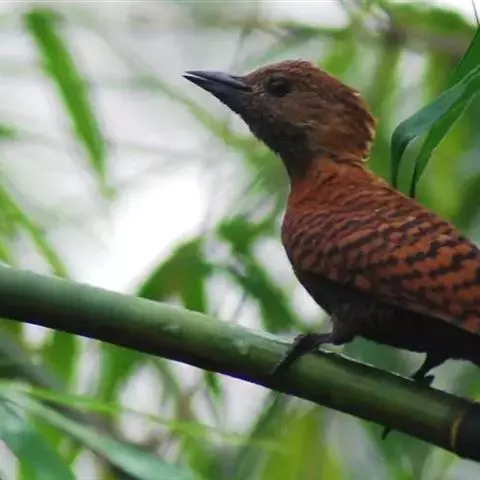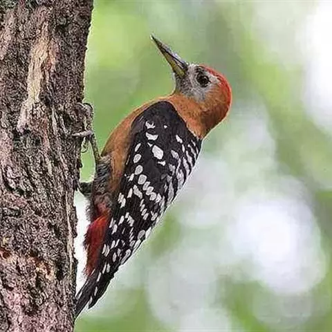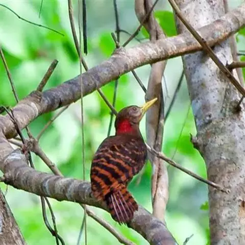 栗啄木鸟:是一种红褐色啄木鸟,体长21厘米。雄性成鸟整个头棕色,…