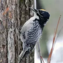 三趾啄木鸟,是啄木鸟科、啄木鸟属的小型鸟类,体长20-23厘米,雄鸟头顶金黄色,雌鸟黑色而具白色斑点。…