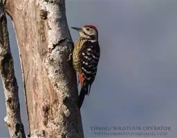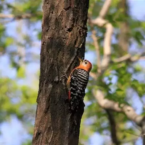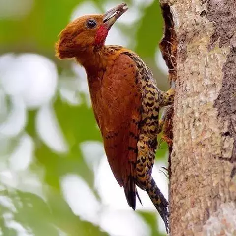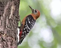 棕腹啄木鸟为啄木鸟科,啄木鸟属是中等体型的鸟类,体长约20厘米。头顶部具红色斑带。脚强健,有趾4个,…