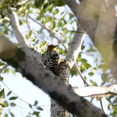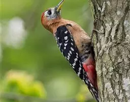 大斑啄木鸟隶属鸟纲鴷形目啄木鸟科。雄鸟头顶黑色,枕部红色,眼先、颊部和耳羽白色,颈部污白色,…
