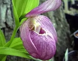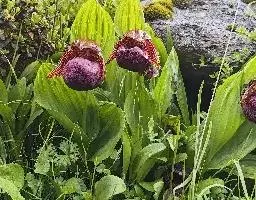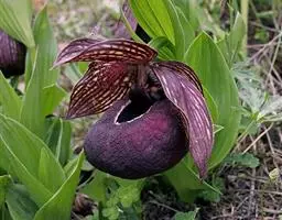 大花杓兰因其形状酷似一个口小肚大的囊袋,又名“大口袋兰”。花体呈紫红色,花朵直径5厘米至6厘米,…