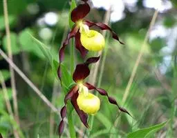 云南杓兰:植株高20-37厘米,具粗短的根状茎。茎直立,无毛或在上部近节处疏被短柔毛,基部具数枚鞘…