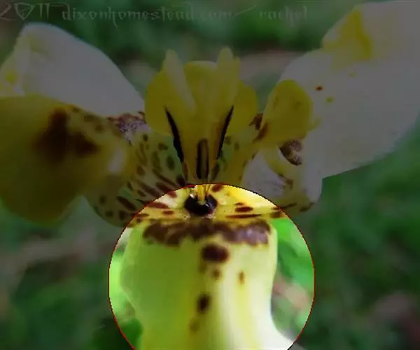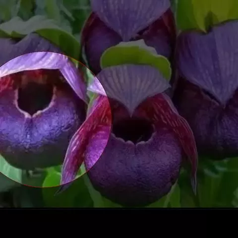 花瓣常近匙形或提琴形,长1.3-1.8厘米,宽5-7毫米,先端常略扩大并近浑圆,内表面基部具毛;唇瓣深囊状,钵形或深碗状,多少近球形,长与宽各约1.5厘米,具宽阔的囊口,囊口前方几乎不具内折的边缘,囊底有毛;退化雄蕊卵状椭圆形,长4-5毫米,宽2.5-3毫米,先端微凹或近截形,上面有细小的纵脊突,背面有较宽的龙骨状突起。