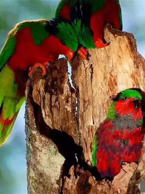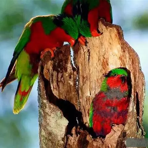 黑顶吸蜜鹦鹉羽色鲜艳,顶部具黑色帽,具红色的头和身体,绿色翅膀。主要以花粉、花蜜与果实为食物,…