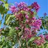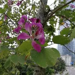 紫荆:分布在中国。树高12-15米,但栽培时变成灌木;树叶圆形,直径8-12厘米,上下表面光滑,呈绿色;花4-10朵簇生,呈紫色到粉红色,花朵尺寸比加拿大紫荆更大;荚果长9-12厘米。