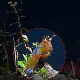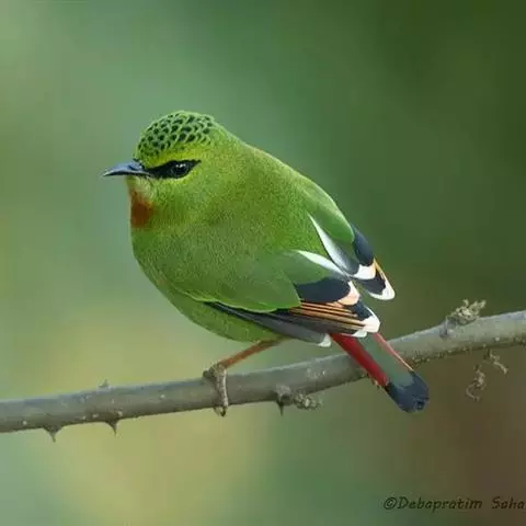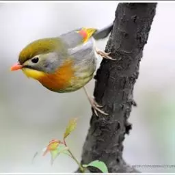 赤尾噪鹛中型鸟类,体长24~28厘米。头顶至后颈红棕色,两翅和尾鲜红色,眼先、眉纹、颊、颏和喉黑色,…