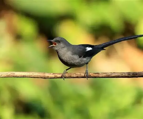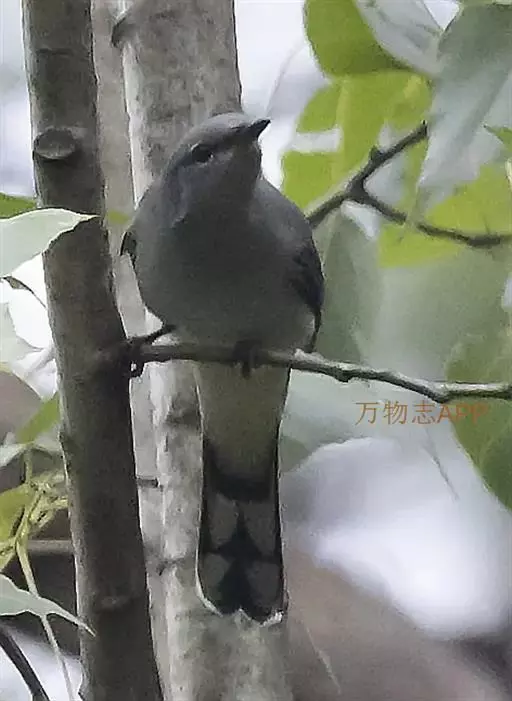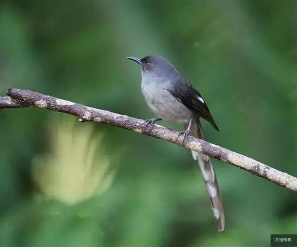雌雄羽色相似。上体鼠灰色,头顶颜色较深,前额和眼先淡黑色。尾特长。中央尾羽最长,外侧尾羽依次缩短。整个尾呈梯形或凸状,羽色与背大体相同,羽轴褐色,向端部逐渐变黑,所有尾羽均具浅灰色或灰白色端斑,从中央尾羽向外侧尾羽灰白色端斑逐渐扩大。两翅覆羽鼠灰色,飞羽略较背深或为黑色;初级飞羽外翻有一窄的灰色羽缘外侧4枚次级飞羽外翻中部白色。在翅上形成一块显著的白色翅斑。颏、喉、胸灰色沾褐。腹淡灰色,腹中部近白色,尾下覆羽浅灰色。