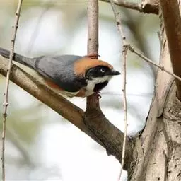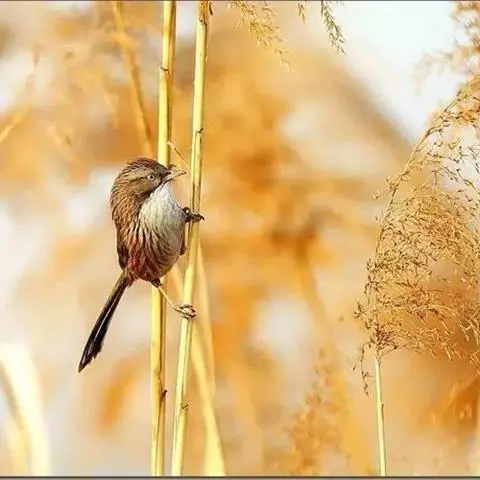栗耳凤鹛,雌雄羽色相似。额、头顶至枕灰色,头顶有一短的不甚明显的羽冠,…
