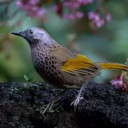 蓝翅噪鹛:噪鹛科、彩翼噪鹛属动物。中型鸟类,体长22-25厘米。上体棕橄榄褐色密被黑色鳞状斑,…