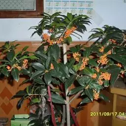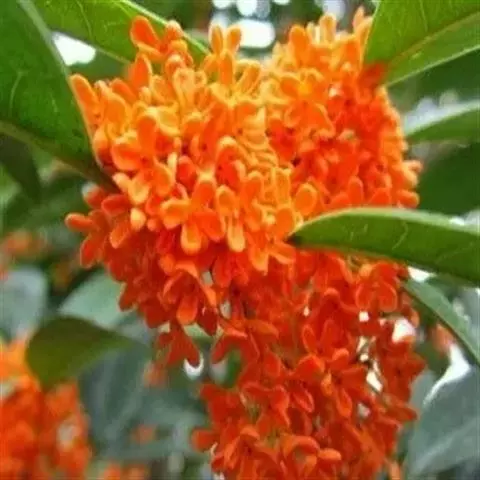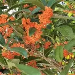 朱砂桂:为丹桂品种群,乔木,高5米,灌幅3米,树冠圆球形,紧密度中等,树皮浅灰色,比较平滑,皮孔稀…
