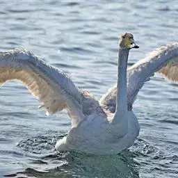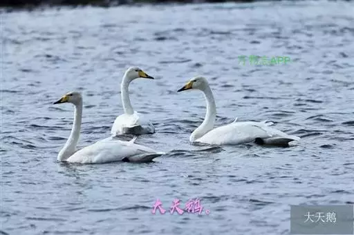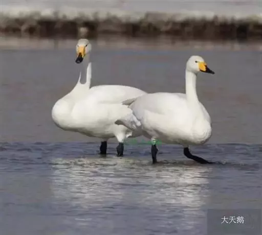野外鉴别特征:大型水禽,体重4~7千克,体长110~135厘米。全身洁白,嘴端黑色,嘴基黄色,外形和大天鹅非常相似,但体型明显较大天鹅小,颈和嘴亦较大天鹅短,嘴上黑斑大,黄斑小,黄斑仅限于嘴基两侧,沿嘴缘不前伸于鼻孔之下;鸣声清脆,有似“Kou-kou”的哨声,而不像大天鹅的喇叭声。野外不难区别。雪雁和小天鹅也较相似,全身白色,但雪雁体型较小,嘴呈赤红色,嘴上无黑斑,初级飞羽黑色,站立时尾部呈黑色,飞翔时翅尖呈黑色,明显与小天鹅不同。