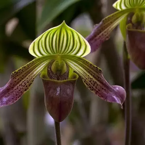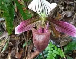 小叶兜兰 兜兰又名拖鞋兰,夏秋或临冬开花,花期最长达70余天。西南地区的兜兰叶片通常要厚实硬朗些,花色更为亮丽显眼,有更好的抗旱保水机制,在抗逆性新品种选育上具有非常高的利用价值。