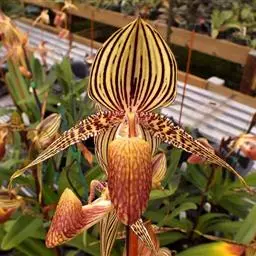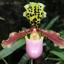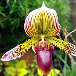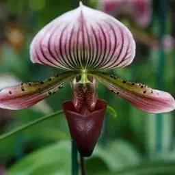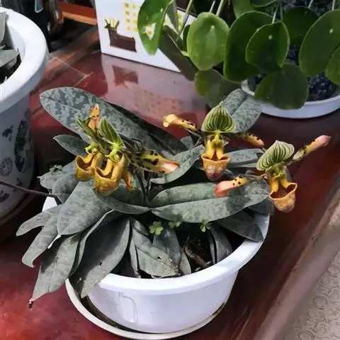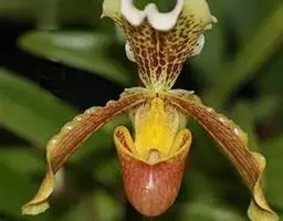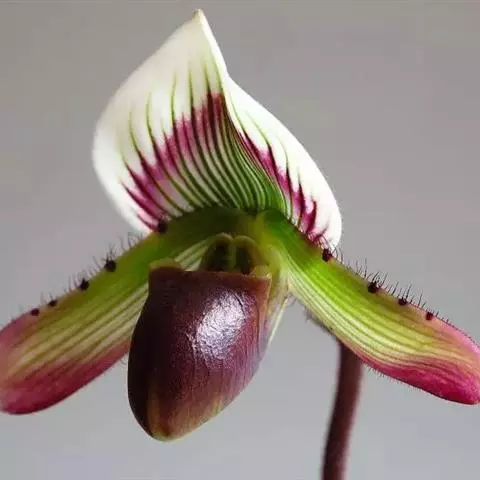 兜兰花比较雅致,色彩比较庄重,色及带有不规则斑点或条纹。花瓣较厚,花朵开放期比较长。属观赏类花草。