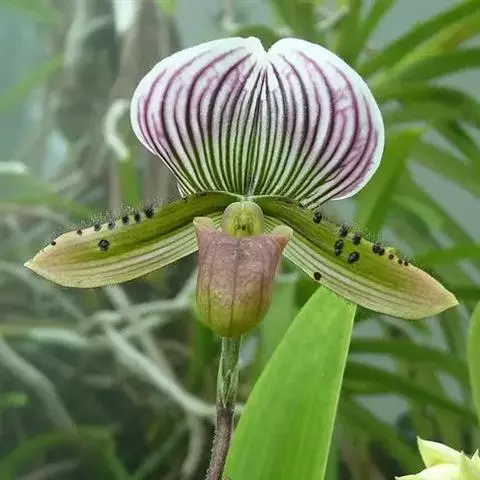 虎斑兜兰兰科,兜兰属地生或半附生植物。叶基生;数枚至多枚,叶片带形、革质。花葶从叶丛中长出,花苞片…