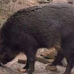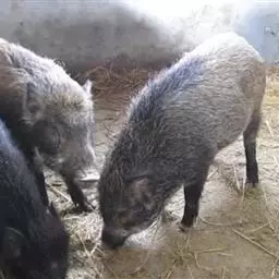 入工饲养时一般购买小野猪进行驯养,其体重在10~22千克。在驯养过程中,最好采取家猪占20%、野猪占80%的方法混养。一般仿照家猪日喂2次。刚开始家养时,应配合生食饲喂,一个月后,一半生食,另一半喂家猪的饲料,如玉米面、麸皮、豆腐渣、粉渣;加入适量食盐,配合混入饲喂。待野猪基本适应圈养后,再用饲喂家猪饲料喂野猪即可,但也应适当添喂一些根类、叶类植物。