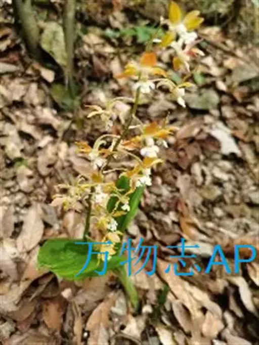 无距虾脊兰:假鳞茎近圆锥形,粗约1厘米,具3-4枚鞘和2-3枚叶。叶在花期尚未完全展开,…