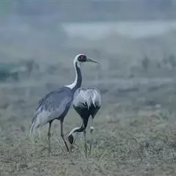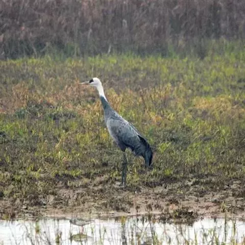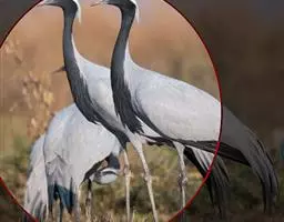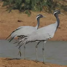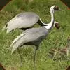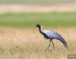 蓑羽鹤大型涉禽,体长68~92厘米,是鹤类中个体最小者。通体蓝灰色,眼先、头侧、喉和前颈黑色,…