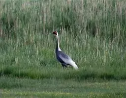 白枕鹤(学名:Grus vipio)体形与丹顶鹤相似,略小于丹顶鹤,而大于白头鹤。上体为石板灰色。尾羽为暗灰色,末端具有宽阔的黑色横斑。取食时主要用喙啄食,或用喙先拨开表层土壤,然后啄食埋藏在下面的种子和根茎,边走边啄食。该鸟为稀有的笼养观赏鸟类,主要繁殖在黑龙江、吉林等省或更北的广大地区,冬天部分迁徙到江苏、安徽、江西等省的湿地越冬。白枕鹤为中国国家二级保护珍禽。